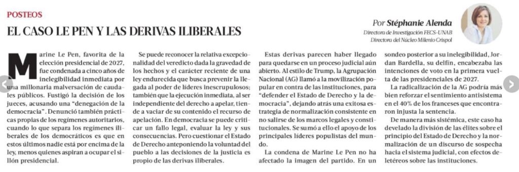 Por Stéphanie Alenda, Directora de Investigación FECS-UNAB. Directora del Núcleo Milenio CRISPOL.